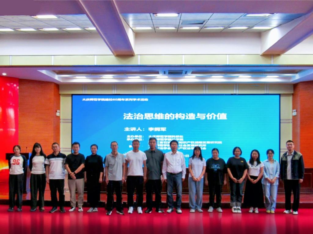 9月9日上午,由学校科研处牵头主办,法学院联合黑龙江省石油石化知识产权战略发展研究院、法与社会发展研究所及大庆市法学会知识产权法学研究会共同承办,特邀中国法学会法理学研究会副会长、吉林大学法学院博士生导师李拥军教授在博雅讲堂为法学院师生做了题为《法治思维的构造与价值》的专题学术讲座,学院近200名师生现场参与。此次活动是大庆师范学院建校60周年系列学术活动的组成部分,全院师生在名家分享中探寻法治思维的核心要义,为校庆系列活动注入浓厚的专业学术氛围。