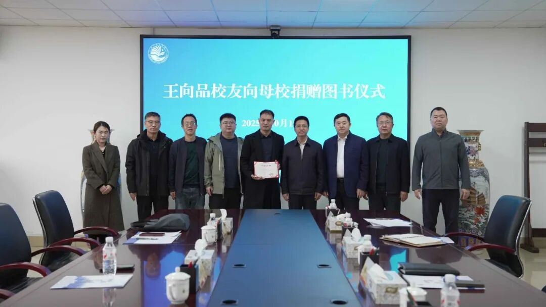 10月15日上午,我校2014届法学专业校友王向品、2016届法学专业校友齐鑫等人返校,将《中国管理哲学的现代化应用》、《成本管理会计与企业决策分析》等文学类、经济管理类书籍共计1316册赠予母校。校长、党委副书记张平出席会议,办公室、宣传统战部、图书馆、招生就业处、法学院等相关人员参会。